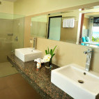 Facilities include the Clubhouse where all meals are served, a bar deck area, spa, games room, infinity pool with separate dive training area. Sports such as table-tennis, football and badminton are available as well as motorised water sports nearby. Topside tours to local attractions can also be arranged. There is a small beach area a short walk away along the rocky shoreline.