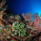 For those who prefer reef diving, there are plenty of sites in the Strait where you can drift along densely covered walls and encircle sea mounts observing the vibrant colours that dominate these well preserved sites. Visibility can be up to 40 metres in the dry season and you can expect to see anything from pygmy seahorse to a blue whale cruising past. It's likely that you'll encounter dolphin and pilot whales during your stay and hammerhead sightings are normally determined by the full and new moon phases.