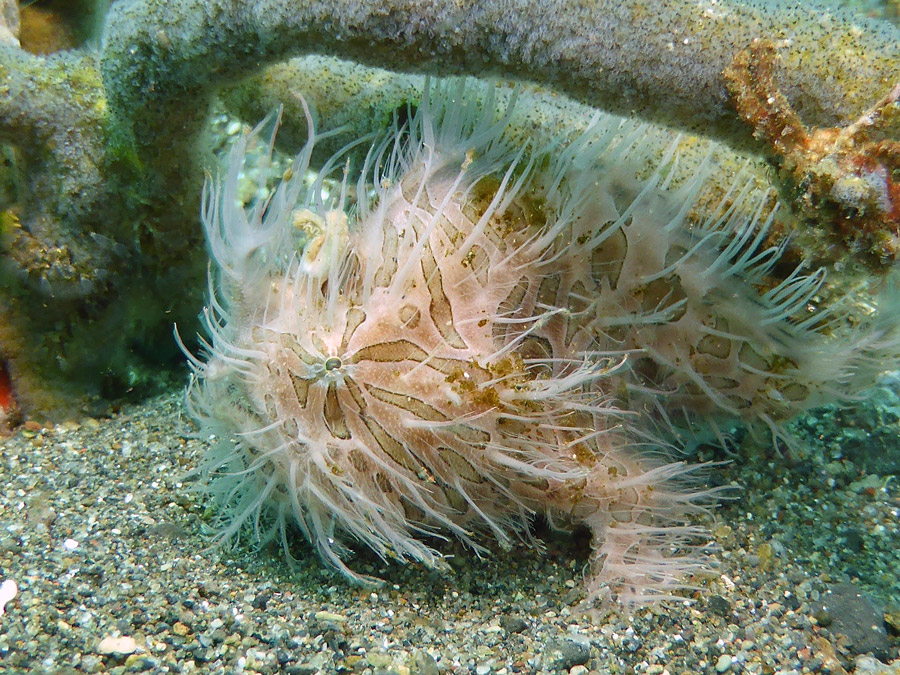 Photographers will enjoy the treasure hunt for weird and wonderful critters on the black sand and volcanic rock slopes inside the bay. Expect rhinopias, frogfish, scorpion fish, crabs, shrimp, octopus, squid and plenty more.