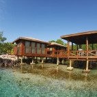 The 56 wooden cabanas are nestled in lush foliage (Hillside rooms, six standard and four superior) or perched on stilts over the water (Key rooms, 18 superior and 28 deluxe). All feature floor to ceiling windows, an en-suite bathroom, porch and are cooled either by fan and the tropical breeze (Hillside standard) or air-conditioning (all others). The Key deluxe rooms are the most spacious and dispersed along the perimeter, accessed by taxi boat.