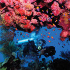 The on-site PADI 5-star Gold Palm Instructor Development Centre (IDC) offers a comprehensive range of courses. The fleet of modern dive boats head out to the nearby dive sites three times a day and it's possible to shore dive in the lagoon and on 'Front Porch' reef. There's an amazing variety of marine life to be found here and 27 colourful dive sites to explore. Expect squadrons of eagle rays, schools of brightly coloured tropical fish and the occasional meandering shark. Nitrox is available.