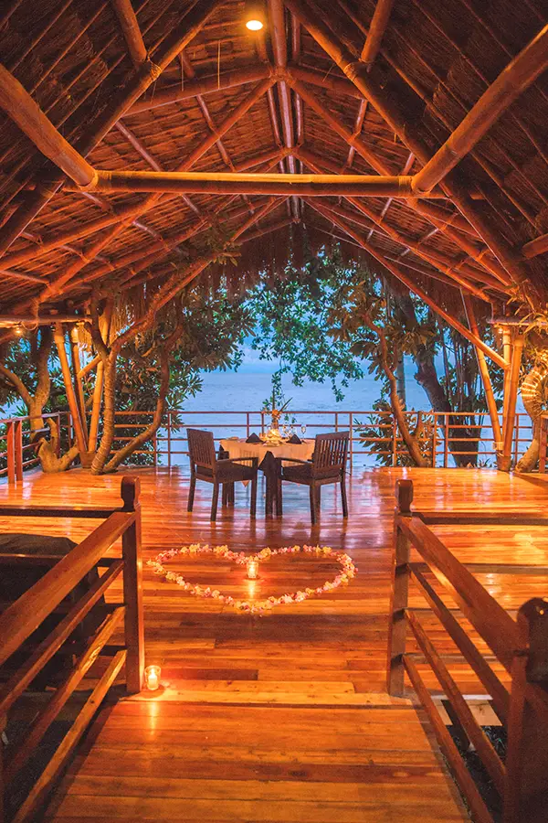 Facilities include the Sanctuary Spa, yoga classes in the treetop platform overlooking the ocean, fitness classes and Warrior gym, and kids’ play centre. The tour desk can arrange outing to discover South Negros Oriental including hiking, mountain biking, whale shark excursions, dolphin watching, and village tours. The dive centre is on site and able to facilitate house reef diving, boat diving, courses and, at certain times throughout the year, camera workshops.