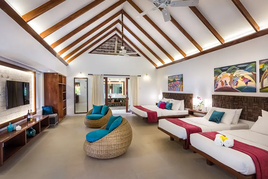 Combine authentic Filipino hospitality with pure luxury accommodation and world-class diving at Atmosphere Resort. Featuring 40 suites, family rooms, studios and penthouses; all of which are spacious and feature air-conditioning, TV, minibar, eco-friendly amenities and coffee/tea-making facilities. The Deluxe, Deluxe Superior, and Family Duplex all feature outdoor tropical bathrooms with a shower and personal verandah. The Premium Suites have the addition of a living area and oversized open-air bathroom, the Premium Pool Suites feature a private dipping pool. All Suites are located in lush tropical gardens where pathways leading to the pool through manicured lawns.
