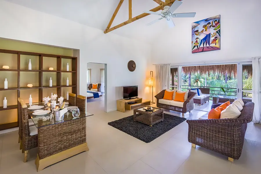 The Studios and Penthouses feature a fully fitted kitchen and dining area. All offer an outdoor lounging area with private seating area, and dedicated bedrooms. These are set back towards the rear of the resort, some with elevated views over the resort and out towards the ocean.