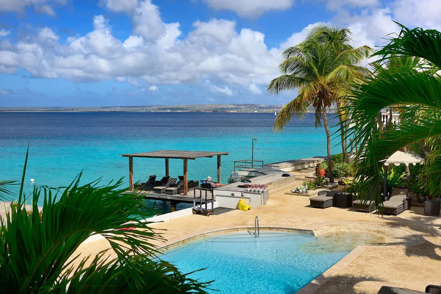 Located in the Belnem neighborhood of Kralendijk’s Punt Vierkant, Belmar Oceanfront Apartments are a diver’s paradise. They're also just a short ride away from Te Amo Beach, Pink Beach, Lac Bay, and the Donkey Sanctuary. Perched right on the water, this stylish Caribbean accommodation provide stunning ocean views and direct access to Bonaire’s incredible underwater world.