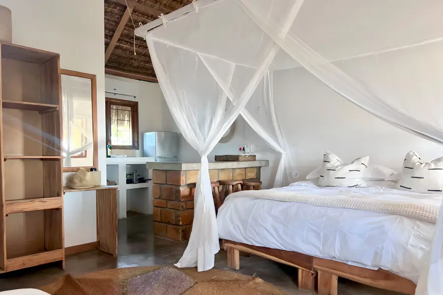 Blu @ Tofo has five en suite sea view apartments centrally located on Tofo Beach. Each apartment is furnished with a double and single bed (three single beds are also available), locally-made furniture, and a kitchenette that's fully equipped with a fridge, kettle and a hotplate. Rooms also benefit from air-conditioning.