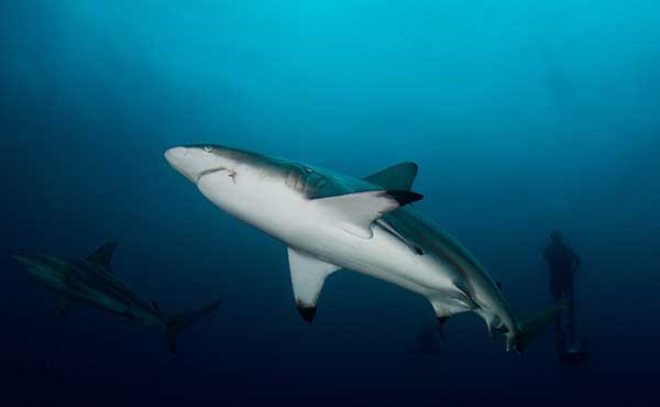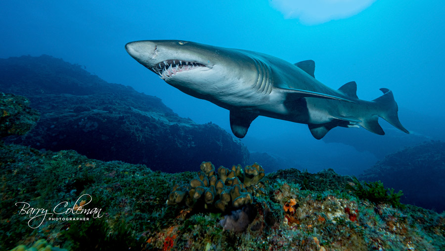 The biodiversity of marine life and variety of dive sites in this small area is incredible. During the week expect to observe colourful nudibranchs and reef fish, numerous critters, moray eels, crayfish, bat fish, stingrays, eagle rays, dolphin, and sharks. Oceanic black-tip sharks can be seen throughout the year whilst ragged tooth (raggies) arrive in June to breed and are observed in large numbers at Cathedral dive site. Other seasonal visitors include tiger, bull, hammerhead, and guitar sharks. Humpback whales migrate along the coast in July and August. In addition, there are two wrecks to discover if conditions allow. The SS Nebo & MV Produce are suited to advanced divers, home to large grouper, lionfish, kingfish and more. Keep an eye out for passing sharks.