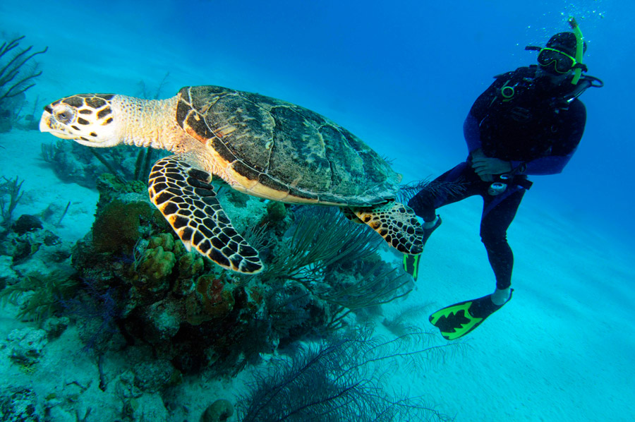 The majority of the dive sites are located along the Grand Turk Wall which plummets to over 2,000m along the west coast of the island. Dive sites of note being McDonalds, Aquarium and Black Forest. The crystal clear turquoise waters offer fantastic visibility and with an average temperature of around 27C, it's welcoming and warm throughout the year. Expect encounters with eagle rays, turtles, grouper and schools of barracuda and jacks as well as plenty of smaller marine life amongst the hard and soft corals.