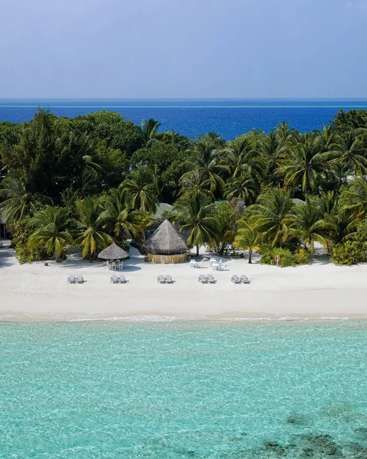 This tiny island is reached by a 45-minute speedboat transfer from Malé, making it an easily accessible resort for any Maldivian holiday or addition to liveaboard.
