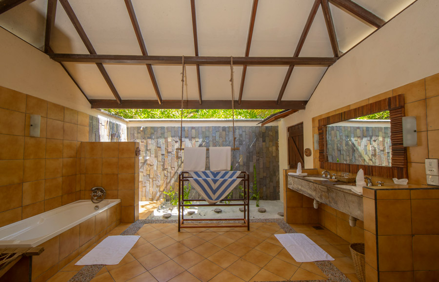 The 4-star resort consists of 125 villas surrounded by lush tropical vegetation, located on the island and over the water. The contemporary villas are cosy and traditionally decorated with modern amenities such as air-conditioning, a TV, tea and coffee facilities. Superior and deluxe villas have a day bed on the verandah, whilst a traditional swinging chair (udoli) adorns the sundeck of a water villa. Family villas can be created by inter-connecting two superior villas. WiFi internet access is available in the public areas for a charge.