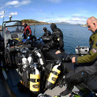 In addition to superb wreck diving, this region supports exceptional diversity and vibrant kelp forests, with thorntail stingrays, wolfish, monkfish and all manner of smaller marine life and crustaceans to discover. Spring sees a profusion of colourful nudibranchs with over 70 species discovered here, while dog sharks can be seen in summer months.