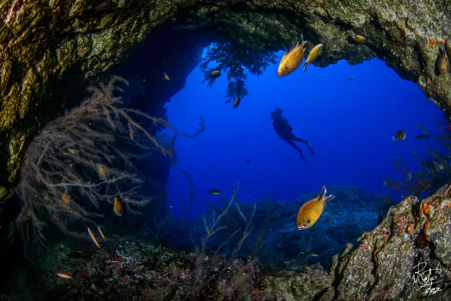 Dive sites ranging from sheltered coastal locations just minutes from the marina, to offshore reserves located up to 30 nautical miles from shore. The dive season runs from June through to October, when water temperatures range between 19°C and 24°C, and visibility typically varies from 15 to 50 metres. Around the island, approximately 55 dive sites offer a diverse underwater terrain of caves, canyons, volcanic walls and vibrant reefs, catering to divers of all experience levels whilst advanced divers can explore the deeper pinnacles and blue water sites.