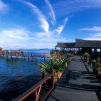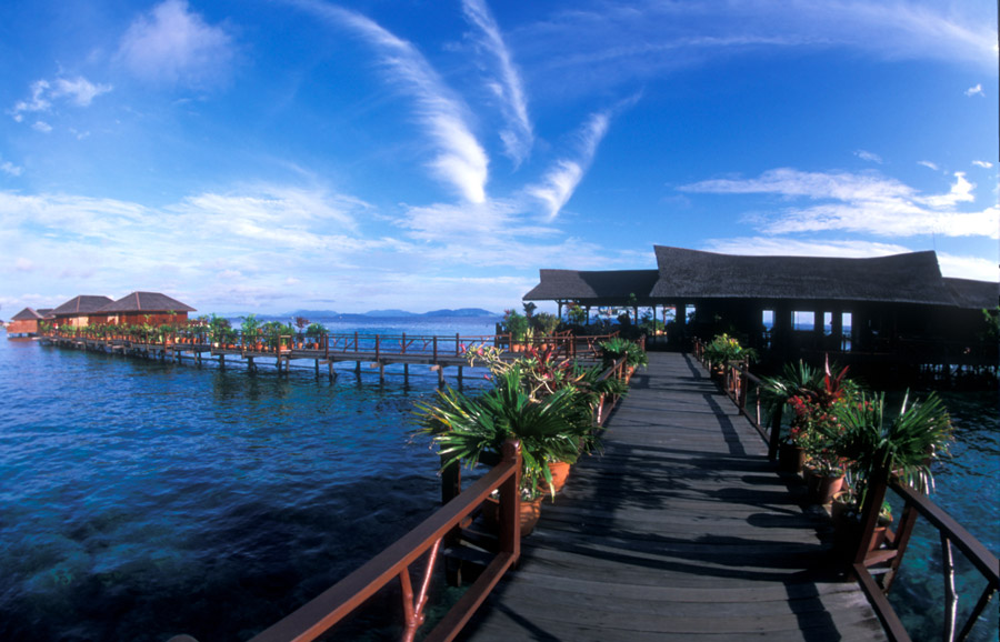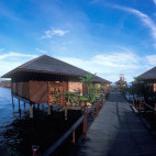 Kapalai Dive Resort is a secluded water village offering 59 wooden chalets, sitting on stilts on the shallow sandbanks of the Ligitan Reefs.