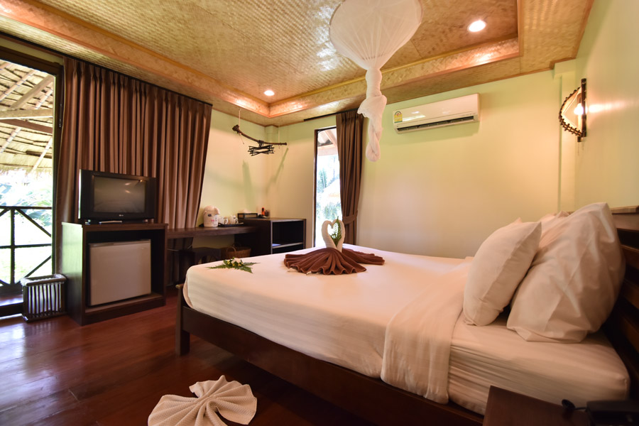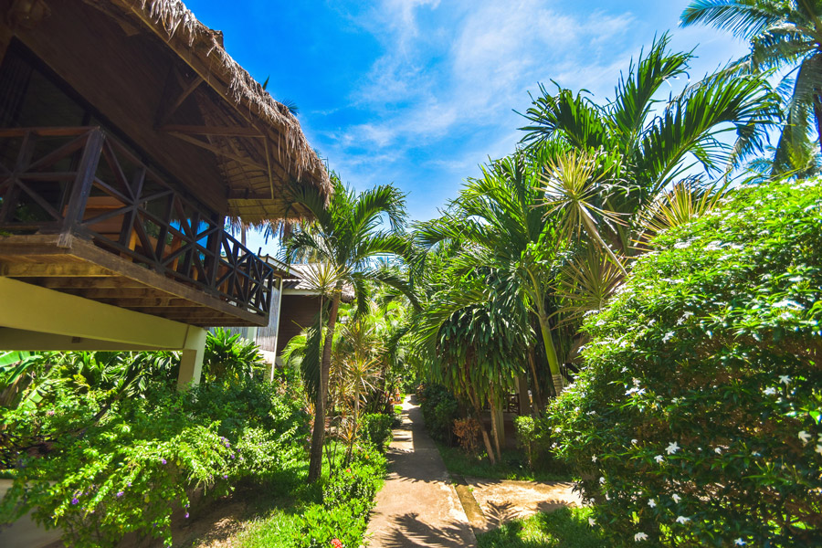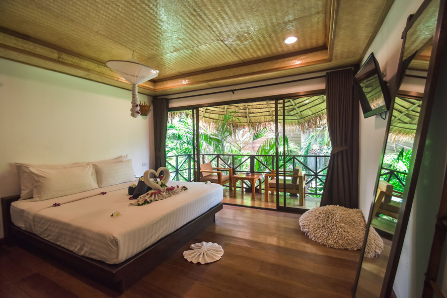 The resort features 45 chalets of varying designs in three zones. Garden chalets are built on stilts and set back around 200 metres from the beach, with options for standard, superior and deluxe rooms. Nine beach front villas offer unobstructed views of the beach, with 11 additional sea view villas offering partial sea views. For those on a tighter budget, three budget rooms are available closer to reception and the resort’s swimming pool.
