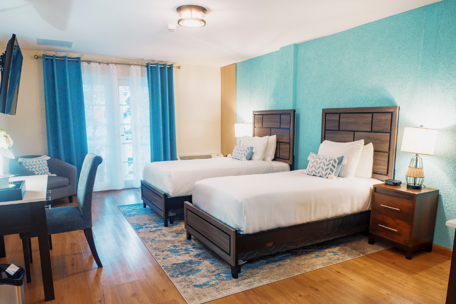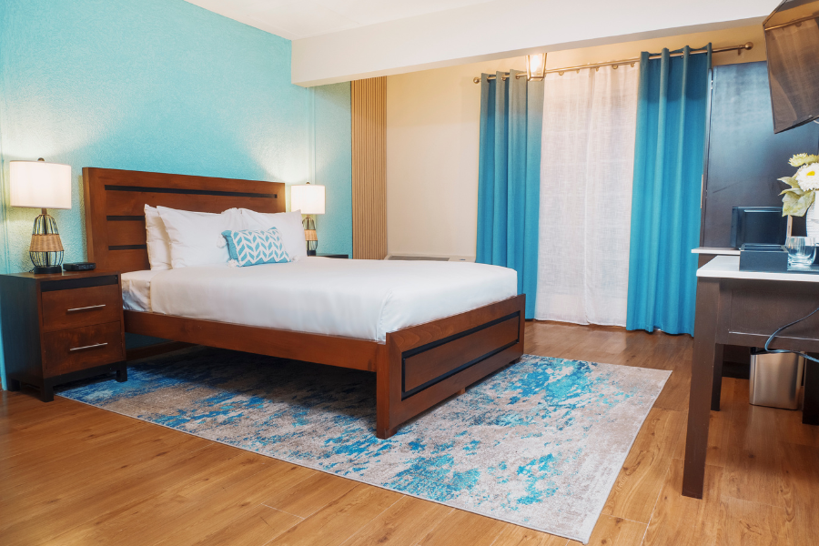 Ocean view rooms are thoughtfully furnished with contemporary decor and modern amenities, including a private patio with alluring ocean views. Rooms are en suite, with premium bedding, flat-screen TV, mini-fridge and coffee making facilities. Mobility access rooms have accessible features and roll-in showers, while the executive suite offers additional luxury.