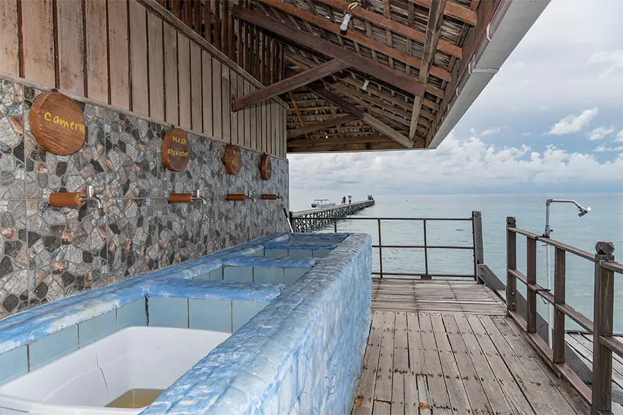 The dive centre is located on the long jetty leading out to the reef and features a reception and equipment room. The experienced team offer a full range of courses (SSI & PADI) and daily house reef diving during daylight hours.