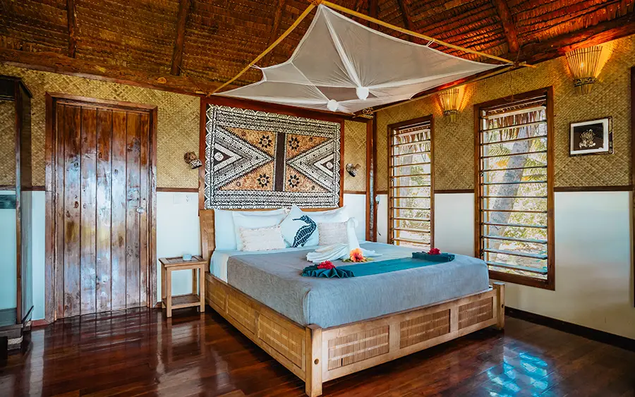 There are two luxury villas on the beach’s “Koromakawa” (old village), perched on a small bluff in a secluded area. Each features their own private plunge pool, stunning elevated views across Great Astrolabe Reef, and private beach area. The villas have two and three bedrooms respectively, with their own living areas and WiFi connection. Private dining can be arranged upon request.