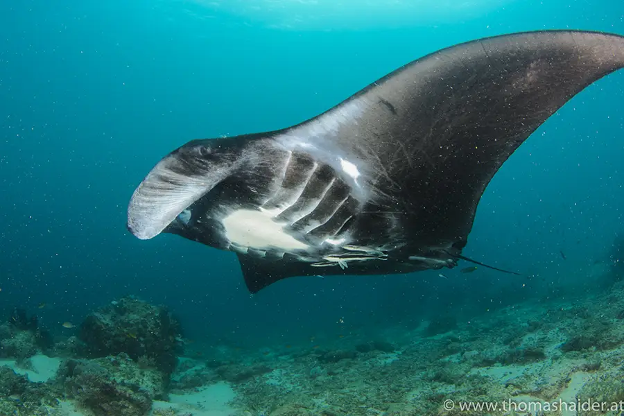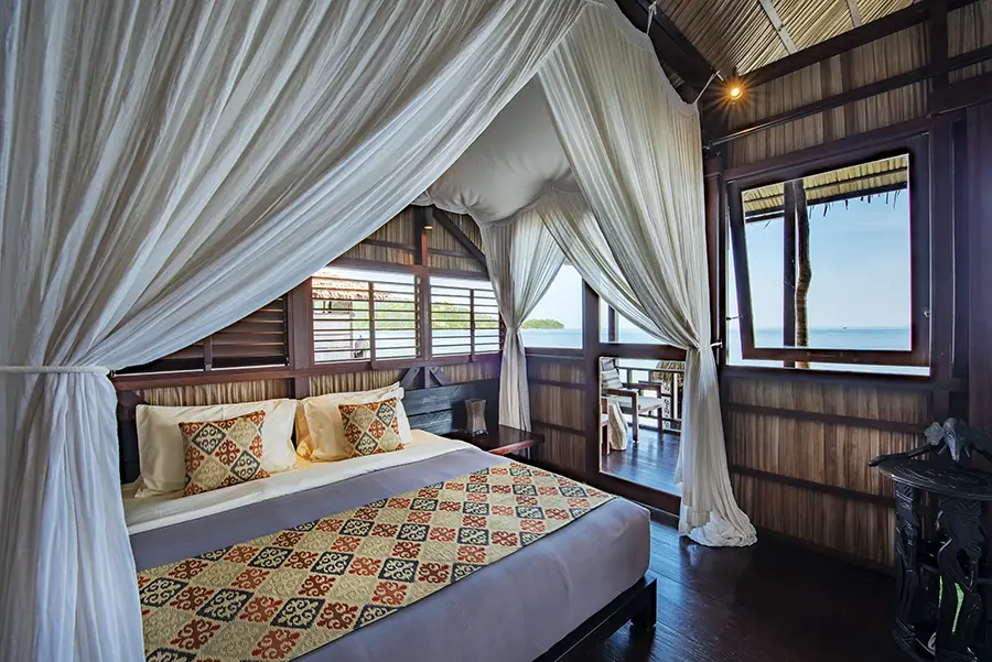 Divers and snorkellers visiting here can expect a truly magnificent marine biodiversity. Located at the epicentre of the Coral Triangle, 75% of all the world’s corals are found here and with well over 1300 fish species recorded, there’s plenty to see. Expect mandarin fish, manta rays, sharks and dugong on the house reef alone!