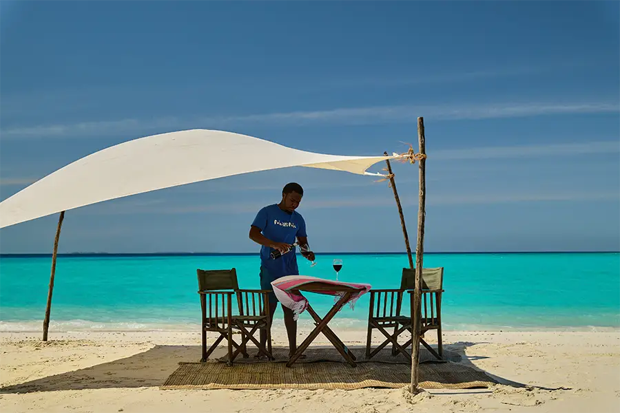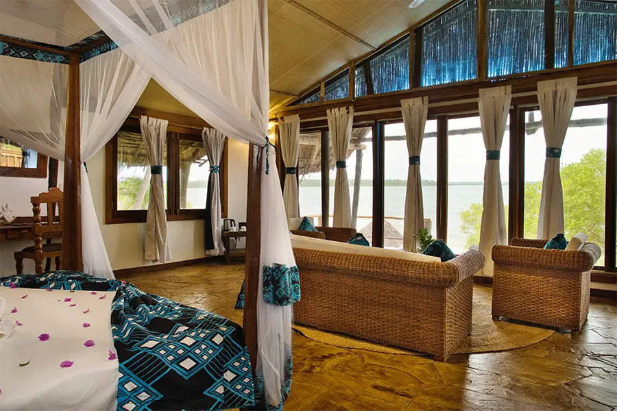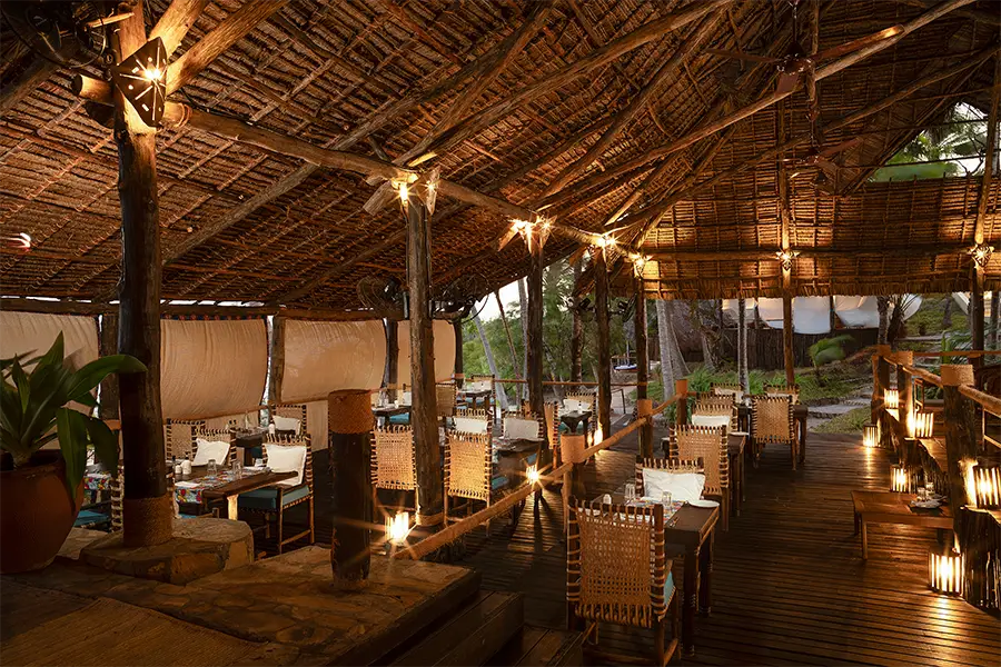 Ten elegant and spacious, en-suite bungalows are raised on stilts, with a private verandah overlooking a stretch of white sand beach. Each bungalow has its own unique style and charm. The Bahari Bungalows are set among the coconut palms overlooking Chole Bay, offering a simple and stylish space, each with a personal terrace area. The Asali Suite Bungalows feature two separate bedrooms, perfect for families and groups of friends, one of these suites also features its own private swimming pool. The Alfajiri Suite Bungalow is elegant and discreet, perfect for couples, with a four-poster bed and its own private swimming pool overlooking the Chole Bay.