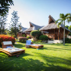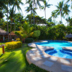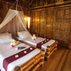 The resort features 27 rooms and suites in five categories, each with en-suite bathroom, air-conditioning TV and safety deposit box. The deluxe, suites and family rooms have tea and coffee making facilities. There are ten standard individual bamboo cottages at the back of the property surrounded by lush tropical gardens and coconut palms. There are two single and five double bungalows located around the pool and one by the beach, most have a twin bed configuration which can be made into a double. The two storey building behind the deluxe rooms features two suites on the top floor with their own private balcony and Jacuzzi and two of the family rooms, one of which is a large room with partially open partition, a double and twin beds, the other is two inter-connecting rooms with their own bathroom, one with a double and the other with twin beds. There is a third freestanding family room at the back of the property with two beds and plenty of room to accommodate a third.