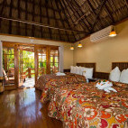The charm of the Caribbean is obvious here, with 61 thatched roof cabanas and suites, all built from native materials and located on the beach or nestled in the colourful tropical gardens. The two-storey buildings provide a secluded hideaway with comfortable furnishings and amenities including air conditioning, fan, fridge, coffee maker, hairdryer and safe. WiFi internet access is available throughout the resort free of charge.