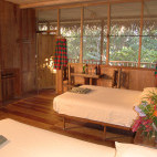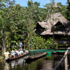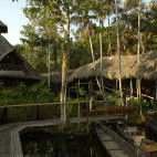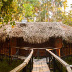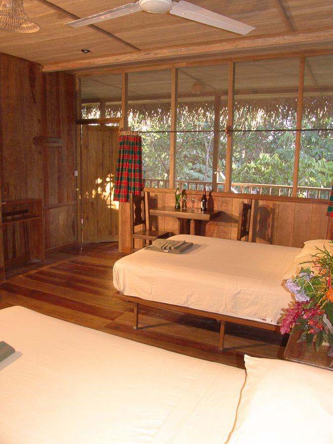 26 comfortable cabins with en suite facilities are constructed from local materials using traditional methods, with high thatched roofs and private shaded terraces, All the cabins are screened against insects, and contain ceiling fans above two comfortable double beds. When not out exploring the rainforest, guests can relax in a hammock and watch the wild fauna, including toucans, agoutis and monkeys.