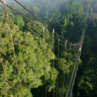 Excursions are on foot, in motor boats or dugout canoes, and are accompanied by an English speaking naturalist guide and local native guide. A spectacular 275-metre canopy walkway allows a bird’s eye view of the rainforest’s 587 bird species.
