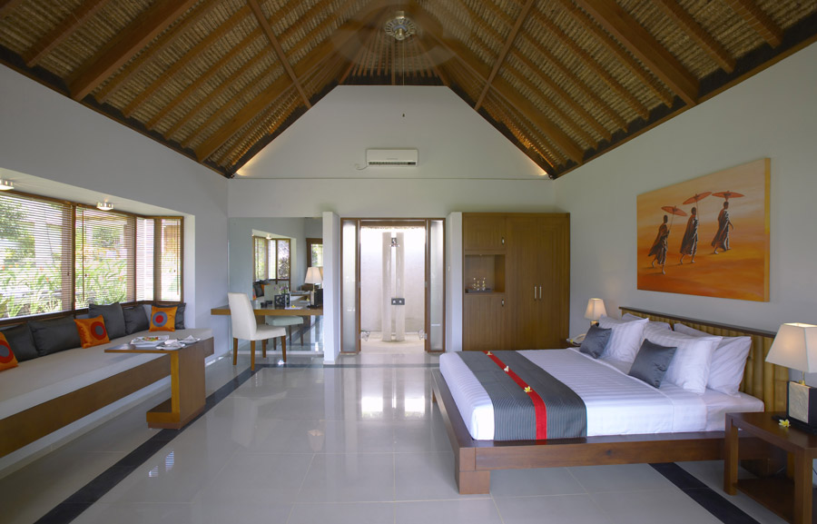 In spite of the luxury, the mood here remains informal and relaxed, all at an affordable price. Set amongst landscaped tropical gardens the boutique property consists of 30 bungalows and three private villas. The individual bungalows are light and spacious with modern furnishings. Two of the superior ones are connected, ideal for families or friends. All feature a double bed (some deluxe have twin) with en-suite part-open natural stone bathroom with two showers and a furnished verandah. Amenities include air-conditioning, minibar, safe and hairdryer. All five of the oceanfront deluxe bungalows feature a king bed facing the sea. The villas offer spectacular ocean views and feature two bedrooms, a living area and swimming pool.