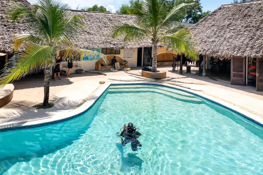 Dive Point Nungwi, perched on the northern tip of Zanzibar, is just a gentle 10-minute stroll from the ivory sands of world-famous Nungwi Beach. This prime location offers a gateway to the flourishing coral gardens of Tumbatu Island and the beautiful corals of Shane’s Reef, a sanctuary for captivating macro life. It's the perfect hub for explorers eager to immerse themselves in a kaleidoscopic world of diverse underwater landscapes and vibrant marine species.