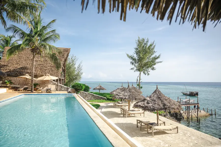 While Sunshine Marine Lodge doesn't have a sandy beach, guests can unwind on seafront sun loungers and enjoy a perfect location for ocean swims at high tide. The lodge also runs a free shuttle service to the nearby unspoiled white sand beach known as Muyuni Beach.
