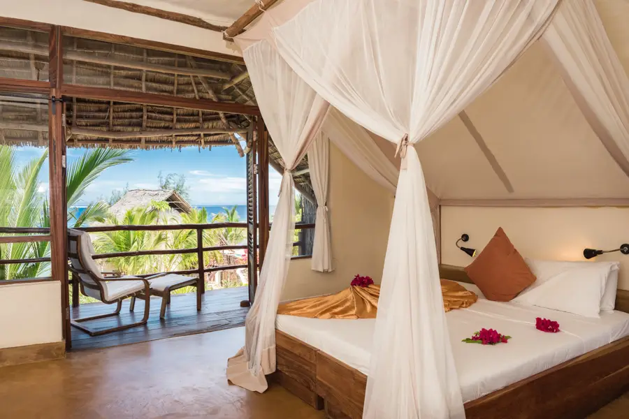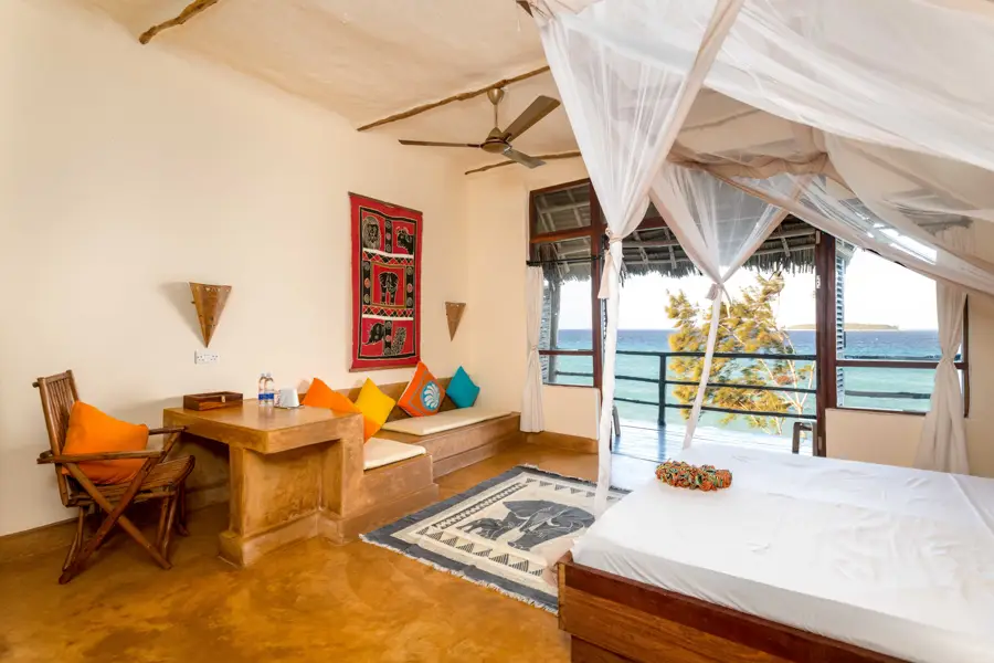 On Zanzibar’s northeast coast, Sunshine Marine Lodge is a great base for diving Mnemba Atoll. Snorkellers and divers can easily reach vibrant coral reefs and abundant tropical marine life.