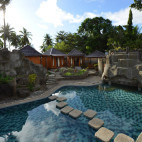 The resort features 34 rooms in two categories; 20 of which are located around the large freeform swimming pool, and the sea view cottages look out onto the beach front, affording more privacy. All rooms have air-conditioning and en-suite bathroom, and are equipped with modern amenities.