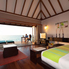 Located on the Rasdhoo Atoll, west of Malé, Veligandu Resort is the only hotel on the island, which is just 600 metres long. It features 91 villas, the majority being jacuzzi water villas, but also featuring accommodations on the beach. The spacious rooms feature a tropical decor, air-conditioning, en-suite bathroom, mini-bar, king size bed, tea/coffee, phone, TV and safe.