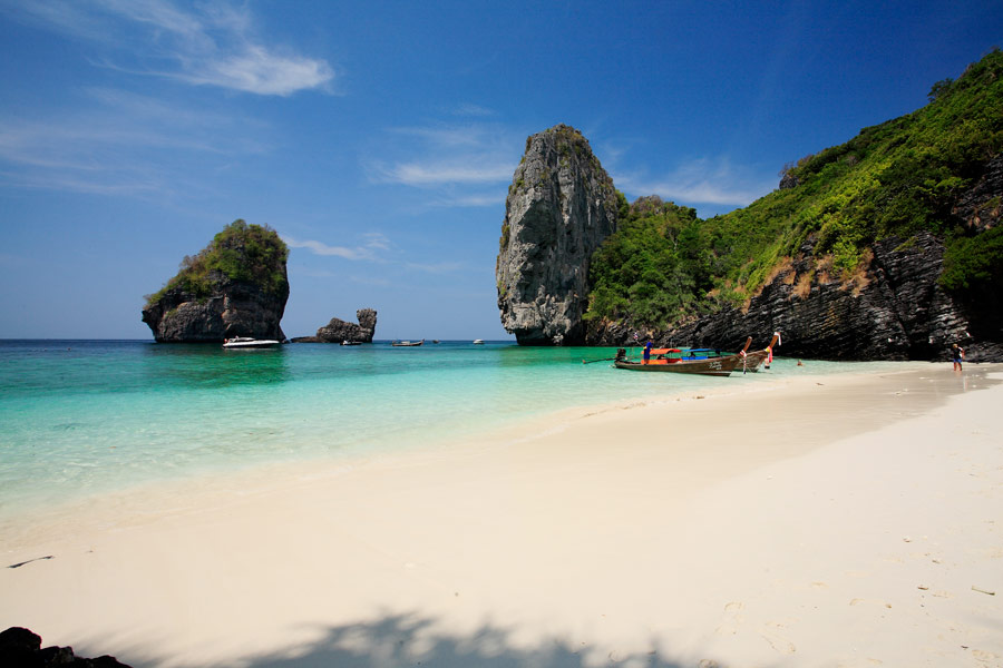This all small luxury boutique resort is located on a pristine stretch of white sand beach on the north east shore of Phi Phi Don in southern Thailand, an hour from Phuket.
