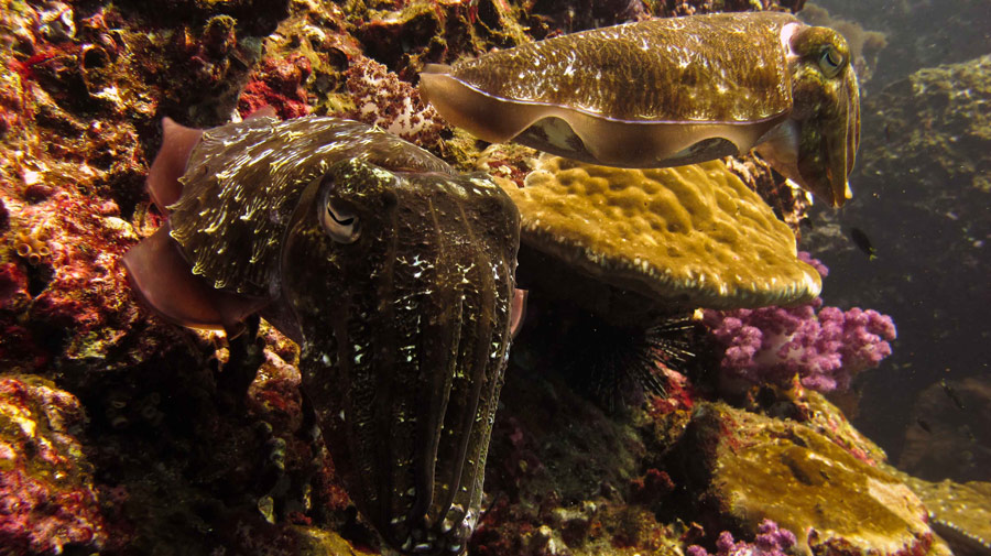 Expect to observe plenty of hawksbill turtles and black-tip reef sharks as well as a plethora of macro life including flamboyant nudibranch, tiger sea horse and elegant ghost pipefish.
