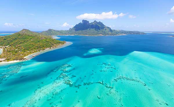 French Polynesia, or Tahiti after the largest island, is in the middle of the South Pacific and blends French chic with Pacific charm. Its 118 islands are as varied as they are numerous, with coral atolls, volcanic peaks, palm fringed beaches and tumbling waterfalls, surrounded by aqua blue waters.