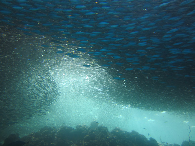 Things don't get much better than floating at 5 metres, mesmerised by the ever shifting patterns created by the dappled sunlight reflecting off thousands of sardines in a bait ball - just one of the long list of highlights of our first experience of diving in the Philippines.