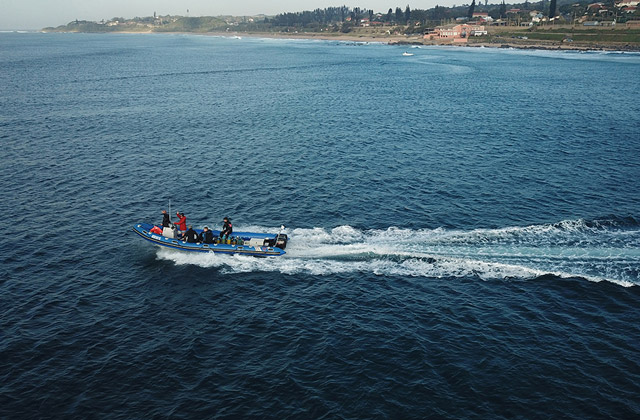 It was my third day out on the inflatable, and I was saddle sore. We had been covering up to 50 miles a day, scouring South Africa’s Wild Coast for the elusive baitballs that attract a parade of predators in mid-July, when the Agulhas current brings swarms of cold water fish to the African coast.