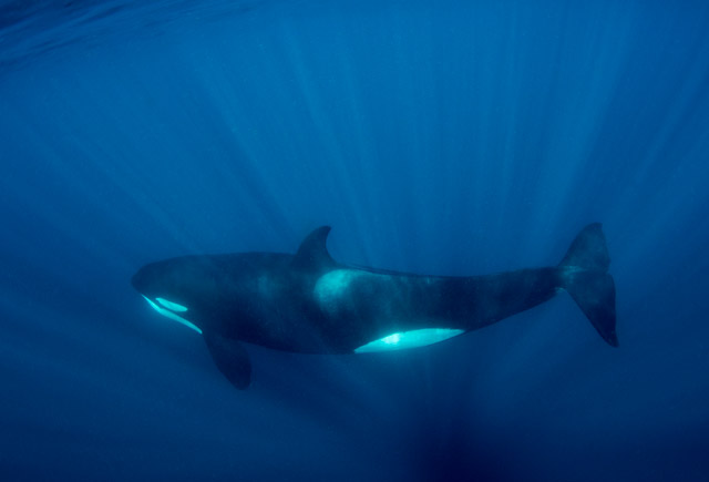We got a few hundred metres clear of the orca and lowered ourselves into the water. Behind my mask I felt unnaturally calm, almost as if I was somewhere else watching it happen. I finned away from the wash of the boat’s engines and looked down at shafts of sunlight cutting through the water. A quick look above and I thought I could see a set of sickle-shaped fins on a bearing towards me, so I ducked down and swam into the shadows.