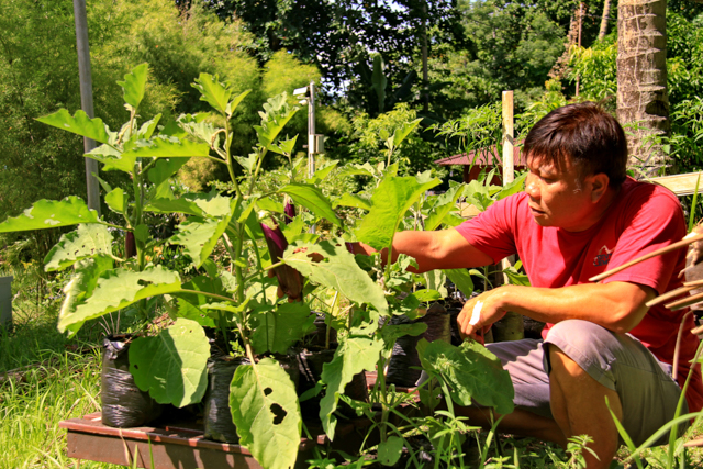 Amongst the things we have been planting are bananas, pink guava, soursop, mango, passion fruit, lemon, lemongrass, sweet coconuts, green chilies, eggplant, long bean, ginger & cassava.