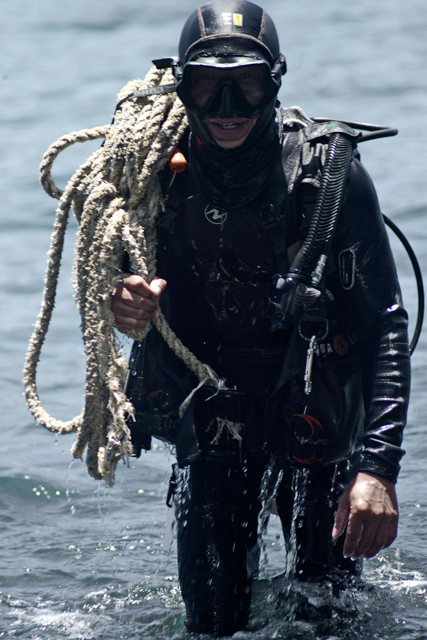 We have taken this time to maintain our boats, here is one of our guides - Herry - checking the mooring-lines.