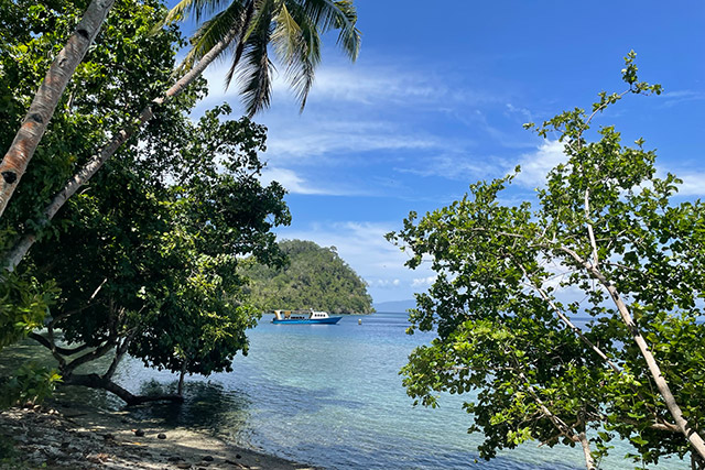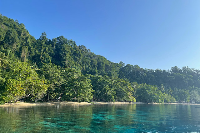 Known as the Spice islands, the Moluccas were once the largest producers of nutmeg, mace and cloves in the world. Spices were a valuable commodity back in the 16th and 17th centuries and many nations fought over them. Even today, the coastline is fringed by nutmeg trees that kiss the surface of the bay.
