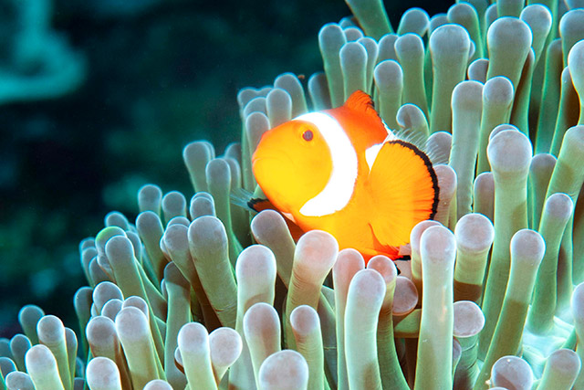 The vibe on the boats was great. It never felt that you were rushed and surface intervals were long enough not to be boring or to get sunburnt! The surrounding nature was also very relaxing. The crew were always trying to locate monkeys in the island vegetation and we were shown sea eagles flying overhead and perching on branches at the shoreline. One day we found dolphins hunting thousands of mackerel, which made the surface look like it was raining! From the boat you can look down at hectares upon hectares of staghorn coral, and the greatest part? We didn’t SEE anyone else!