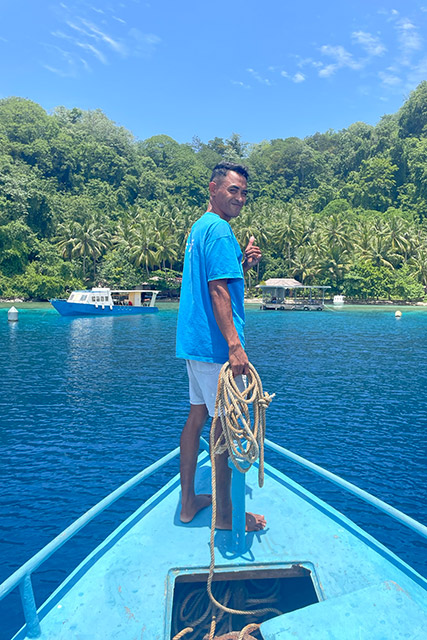 For a remote location, Sali Bay is fairly easy to get to. A flight to Manado via Singapore is followed by a full 24 hours to catch up on some zzzzzzzzs before boarding a domestic flight to Labuha. I stayed at the Novotel Manado and Convention Centre, which has an oblong pool for you to cool down in, and some of the tastiest chicken satay in town. A good night’s sleep will then have you ready for the twin prop domestic flight over to Labuha. The plane touches down on the volcano island of Ternate, before swiftly taking off to the skies again – a total flight time of just two hours and 20 minutes.