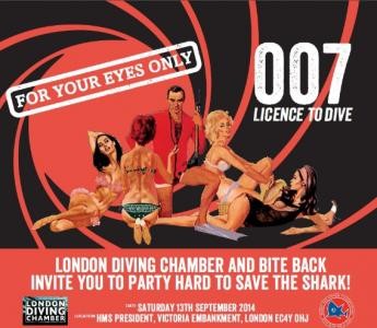 Get your ticket to the 007 Licence to Dive-themed party on board the HMS President on Saturday 13 September. Together with the London Diving Chamber, Bite-Back invite you to ‘party hard to save the shark’ and raise money for charity. Fancy dress is of course, encouraged!