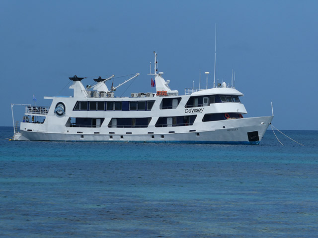 From the moment we stepped aboard on Saturday evening, there was a sense of calm and happiness. The Odyssey has a five dive a day itinerary. Whereas the boats in the Red Sea may have a pre-breakfast dive and then face a long sea crossing, out here it more civilised. Breakfast is at 06:30, to be followed by an informative briefing and then the pool is open. Generally speaking, guests have a good two hour window to make their dives, so there is no need to allocate divers into groups or to get you overboard at a certain time. You are free to gear up and jump from the mothership as and when the time is right.