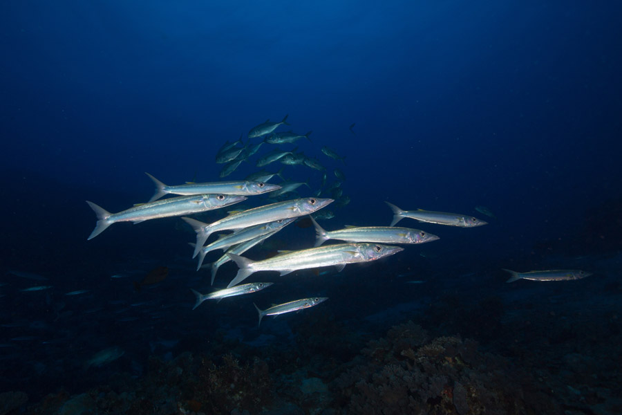 This remote sea, bordering the South Pacific Ocean is the realm of pelagic species, including barracuda, trevally and tuna. The big draw for divers here are the incredible shark encounters, with regular sightings of grey reef, white-tip and silvertip sharks. Larger oceanic species such as hammerhead sharks are also seen, while divers can enjoy spectacular soft coral walls and plunging drop-offs down to 1,000 metres.