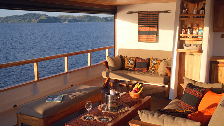 Itineraries vary throughout the year, ranging from three to 11 nights, and ensure you’re at the right place at the right time. From early May through to September the focus is the UNSCEO World Hertitage Site of Komodo, where you can enjoy the kaleidoscopic beauty of shallow tropical reefs and opportunities to see manta rays, and on land expeditions to see Komodo dragons and Pink Beach. Between November and late March, the vessel is in Raja Ampat, the marine biodiversity capital and culturally rich on land. Colourful reef bustling with hard and soft corals, as well as possible encounters with pelagic species are just two of the highlights here. Itineraries are also available in Wakatobi and central Sulawesi.