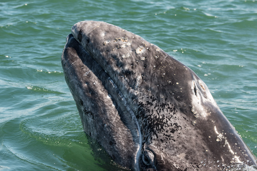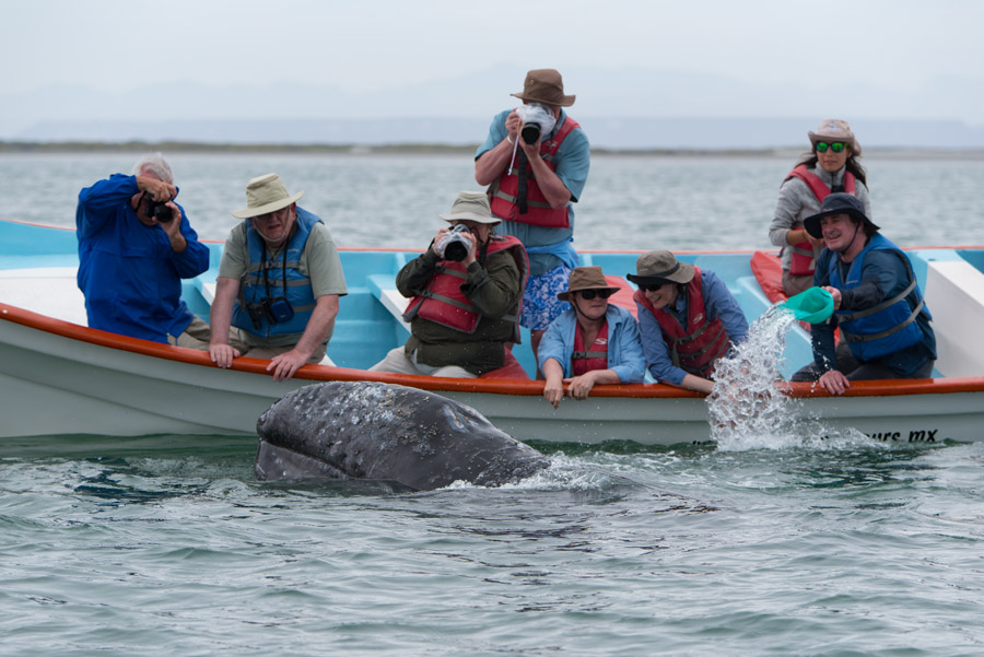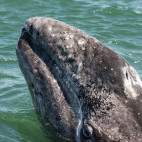 Grey whales mate and calve in San Ignacio Lagoon from January through until the end of April. From mid March onwards, males begin to head north along the coast towards their distant feeding grounds in the northern reaches of the Pacific Ocean and in the Arctic Sea. At this time, perhaps because the mothers are no longer having to contend with ‘amorous suitors’, there is increased contact behaviour with the boats, and even greater opportunities for interaction with the whales.