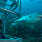 Being an ocean floor cage diver is a unique experience and gives you the chance to encounter a great white shark like very few have, face to face in their domain! As you lower to the floor with your other buddies and a crew member, you can expect to see giant smooth rays, eagle rays and grouper – but keep an eye out as the great white shark appears from nowhere and majestically and effortlessly swims by. Truly breathtaking!